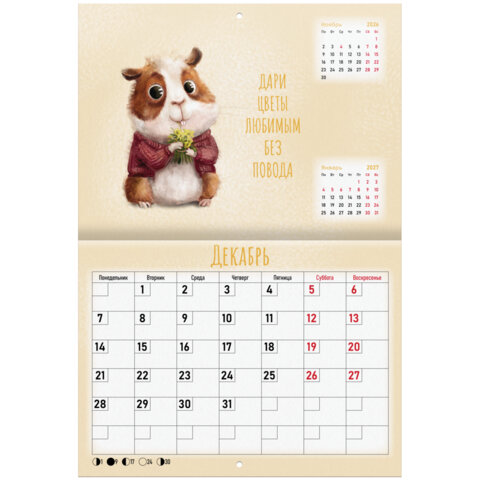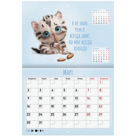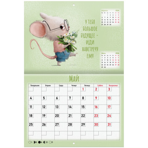 Календарь-планер настенный перекидной на 2026 г., BRAUBERG, 12 листов, 29,5х21,3 см, "Мотиваторы", 116952