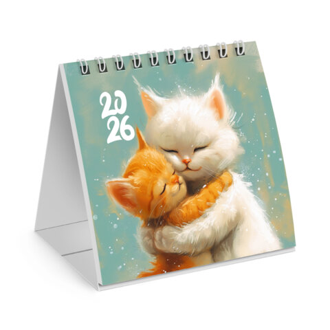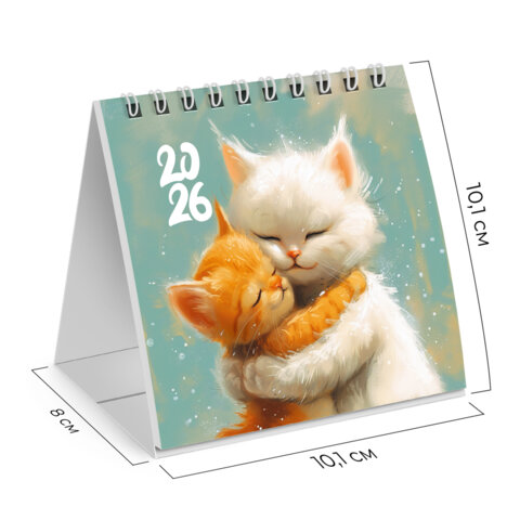 Календарь-домик настольный на гребне, 2026 г., BRAUBERG, 101х101 мм, "Котики", 117274
