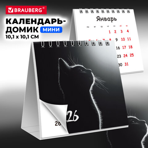 Календарь-домик настольный на гребне, 2026 г., BRAUBERG, 101х101 мм, "Милый котик", 117281