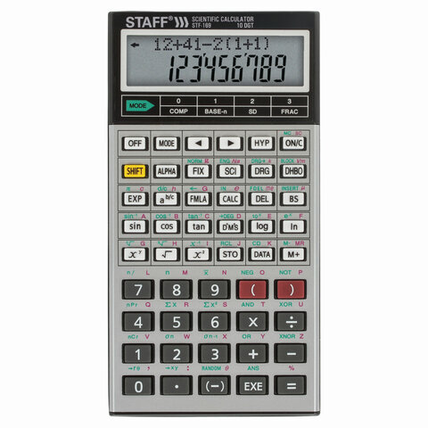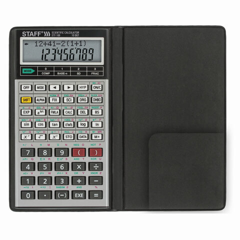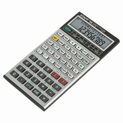 Инженерный калькулятор STAFF STF-169 выполняет все основные вычисления, которые понадобятся школьникам и студентам на занятиях по физике, химии, биологии и географии. В памяти калькулятора постоянно содержатся 38 основных формул из школьной программы.