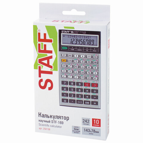 Калькулятор инженерный STAFF STF-169 (143х78 мм), 242 функции, 10+2 разрядов, 250138