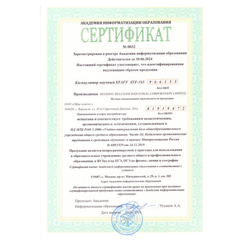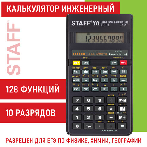 Непрограммируемый инженерный калькулятор STAFF STF-165 выполняет все основные вычисления, которые понадобятся школьникам на экзаменах и контрольных работах. Сертифицирован для использования на ЕГЭ и ОГЭ по физике, химии, географии и ОГЭ по биологии.