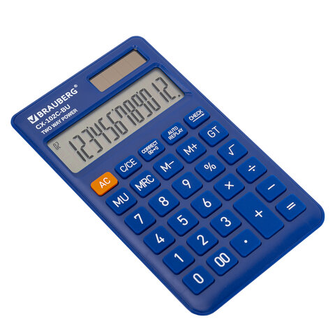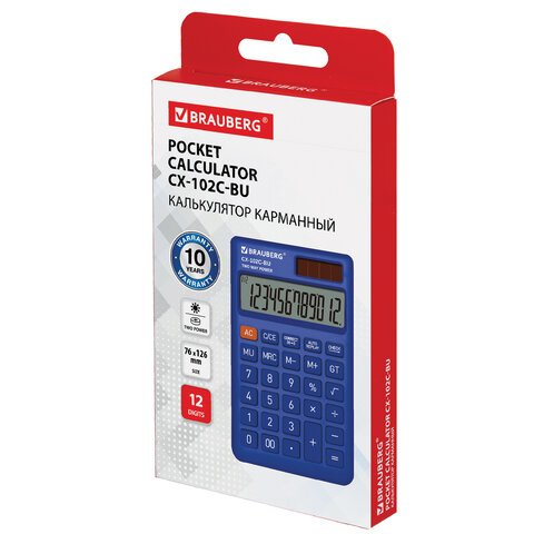 Калькулятор карманный BRAUBERG CX-102C-BU (76x126 мм), 12 разрядов, двойное питание, СИНИЙ, 272648