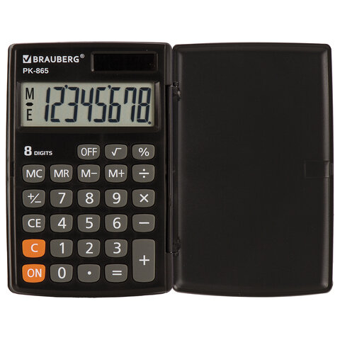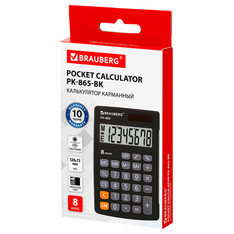 Калькулятор карманный BRAUBERG PK-865-BK (120x75 мм), 8 разрядов, двойное питание, ЧЕРНЫЙ, 250524