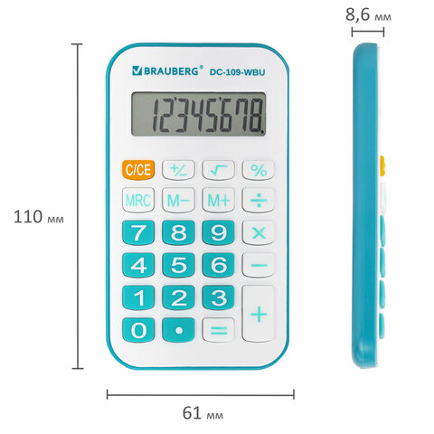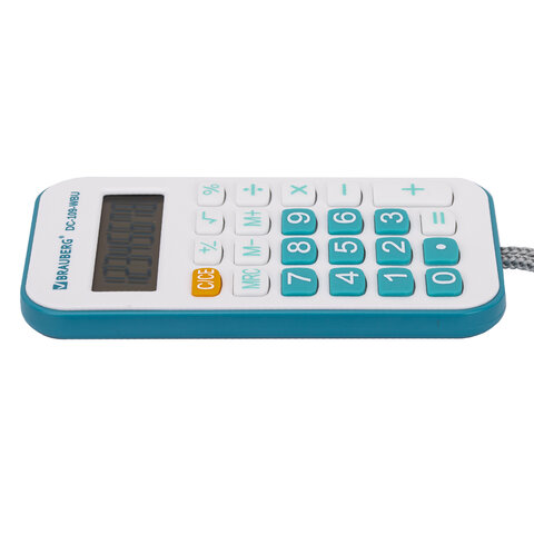 Калькулятор карманный со шнурком BRAUBERG DC-109-WBU (61x110 мм), 8 разрядов, БЕЛЫЙ/ГОЛУБОЙ, 272645