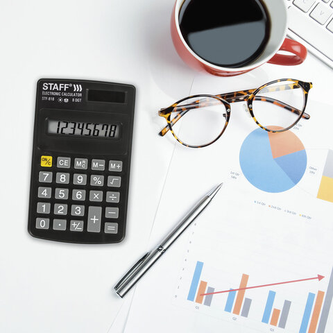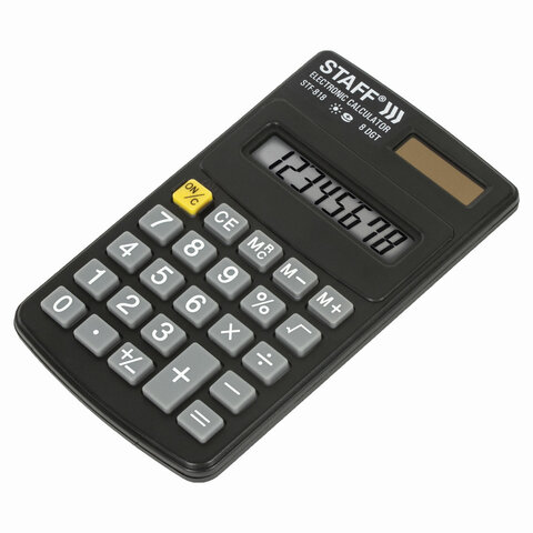 Простой и надежный карманный калькулятор STAFF STF-818 поможет выполнить базовые вычисления везде, где Вам понадобится. Калькулятор легко помещается в карман и удобно лежит в руке.