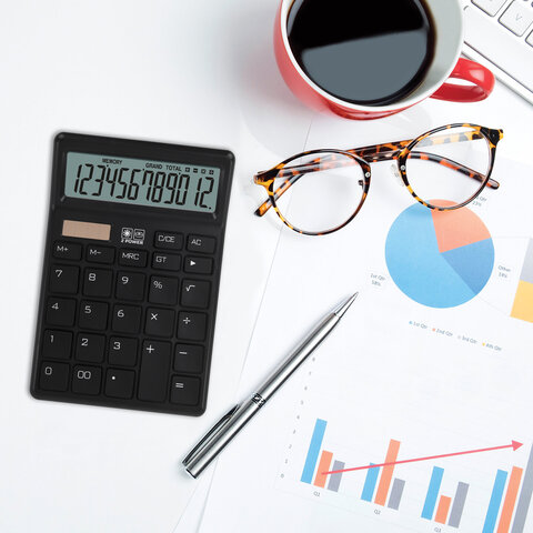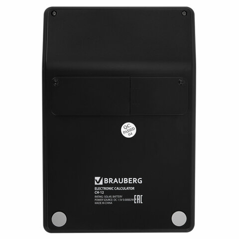 Калькулятор настольный BRAUBERG CH-12-BK (153х103 мм), 12 разрядов, двойное питание, черный, 272958