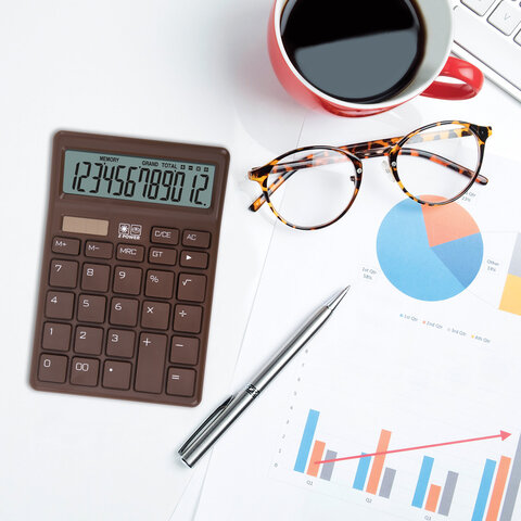 Калькулятор настольный BRAUBERG CH-12-BR (153х103 мм),12 разрядов, двойное питание, коричневый, 272961