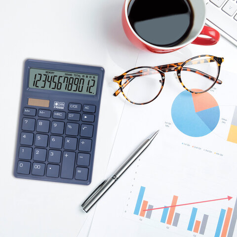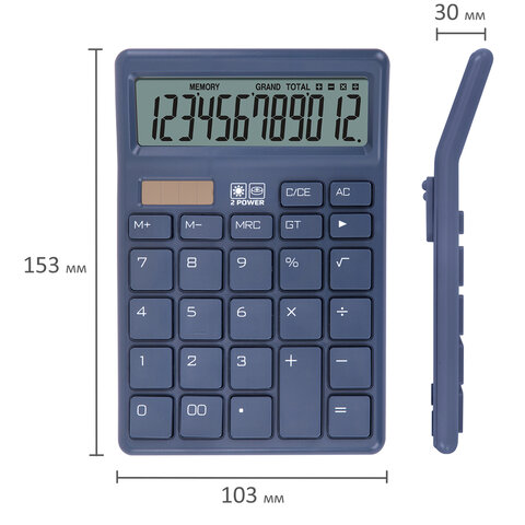 Калькулятор настольный BRAUBERG CH-12-BU (153х103 мм), 12 разрядов, двойное питание, синий, 272959