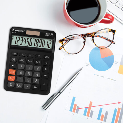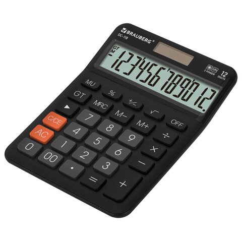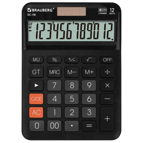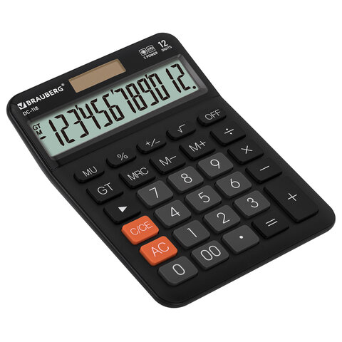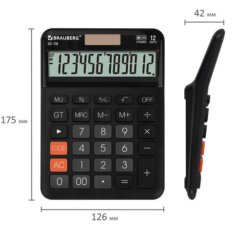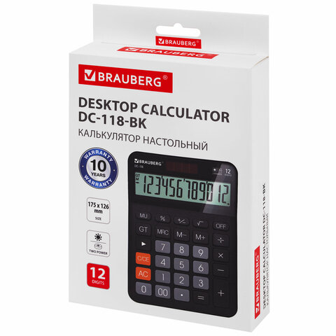 Калькулятор настольный BRAUBERG DC-118-BK (175х126 мм), 12 разрядов, двойное питание, черный, 272962