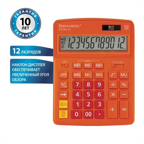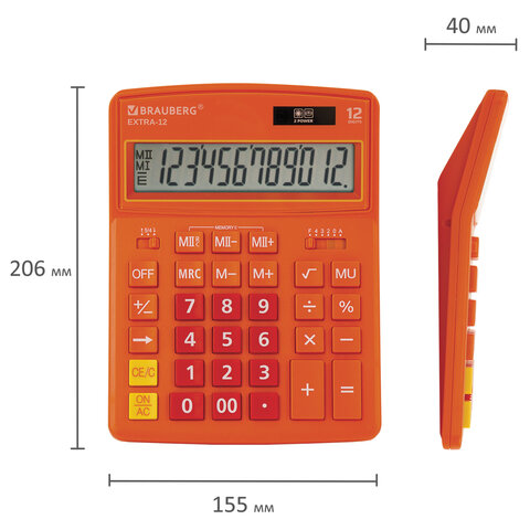 Калькулятор настольный BRAUBERG EXTRA-12-RG (206x155 мм), 12 разрядов, двойное питание, ОРАНЖЕВЫЙ, 250485