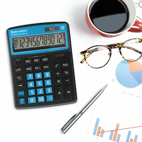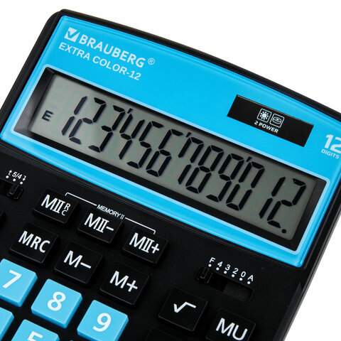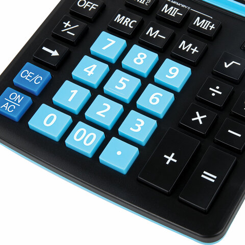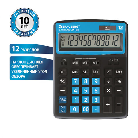 Настольный калькулятор BRAUBERG EXTRA COLOR-12-BKBU. Большой дисплей с увеличенным углом обзора, устойчивый корпус и клавиатура с цветной дифференциацией для эффективной работы с максимальным комфортом.