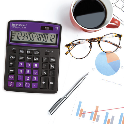 Настольный калькулятор BRAUBERG EXTRA COLOR-12-BKPR. Большой дисплей с увеличенным углом обзора, устойчивый корпус и клавиатура с цветной дифференциацией для эффективной работы с максимальным комфортом.