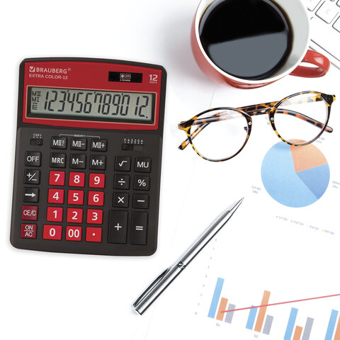 Настольный калькулятор BRAUBERG EXTRA COLOR-12-BKWR. Большой дисплей с увеличенным углом обзора, устойчивый корпус и клавиатура с цветной дифференциацией для эффективной работы с максимальным комфортом.