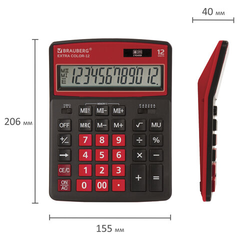 Калькулятор настольный BRAUBERG EXTRA COLOR-12-BKWR (206x155 мм), 12 разрядов, двойное питание, ЧЕРНО-МАЛИНОВЫЙ, 250479