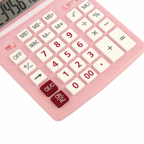 Калькулятор настольный BRAUBERG EXTRA PASTEL-12-PK (206x155 мм), 12 разрядов, двойное питание, РОЗОВЫЙ, 250487