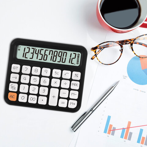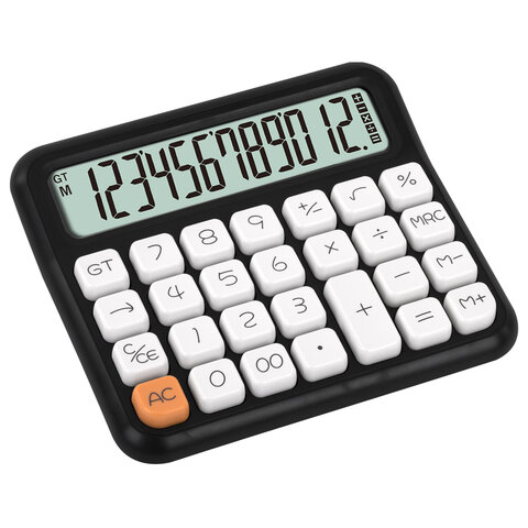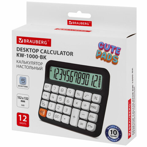 Калькулятор настольный BRAUBERG KW-1000-BK (152x132 мм), 3D-кнопки, 12 разрядов, черный, 272956