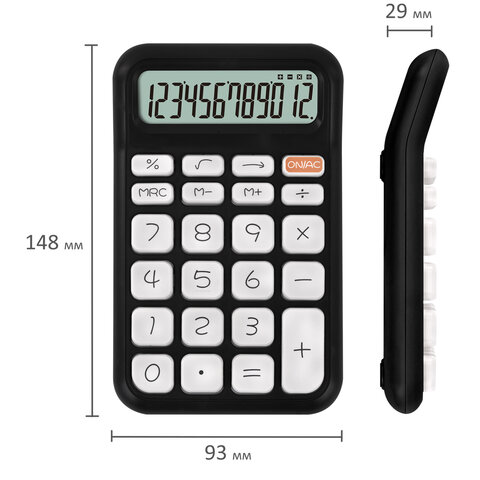 Калькулятор настольный BRAUBERG KW-500-BK (93x148 мм), 3D-кнопки, 12 разрядов, черный, 272954