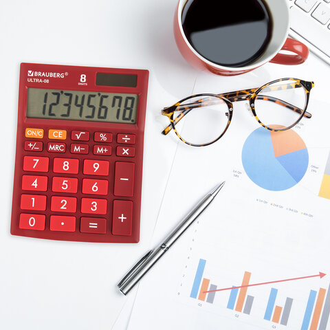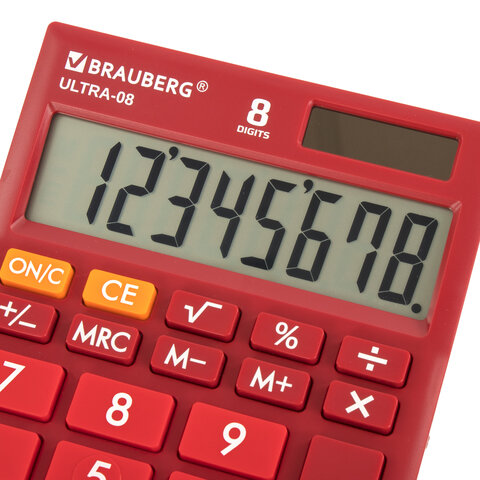 Настольный калькулятор BRAUBERG ULTRA-08-WR. Большой яркий дисплей, устойчивый корпус с прорезиненными ножками и крупная клавиатура с цветной дифференциацией позволяют работать эффективнее с максимальным комфортом.