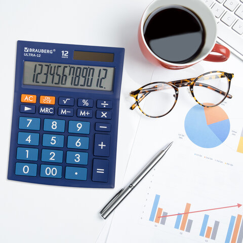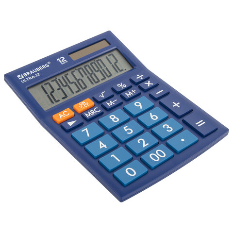 Настольный калькулятор BRAUBERG ULTRA-12-BU. Большой яркий дисплей, устойчивый корпус с прорезиненными ножками и крупная клавиатура с цветной дифференциацией позволяют работать эффективнее с максимальным комфортом.
