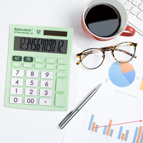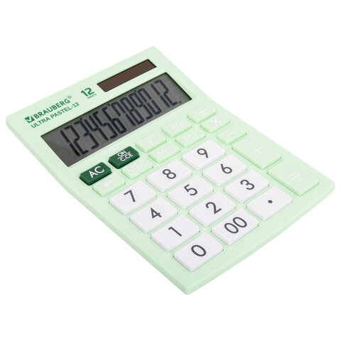 Настольный калькулятор BRAUBERG ULTRA PASTEL-12-LG. Большой яркий дисплей, устойчивый корпус с прорезиненными ножками и крупная клавиатура с цветной дифференциацией позволяют работать эффективнее.