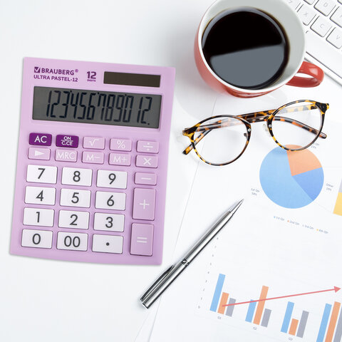 Настольный калькулятор BRAUBERG ULTRA PASTEL-12-PR. Большой яркий дисплей, устойчивый корпус с прорезиненными ножками и крупная клавиатура с цветной дифференциацией позволяют работать эффективнее.