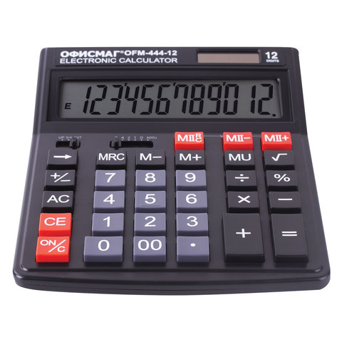 Калькулятор настольный ОФИСМАГ OFM-444 (199x153 мм), 12 разрядов, двойное питание, ЧЕРНЫЙ, 250459