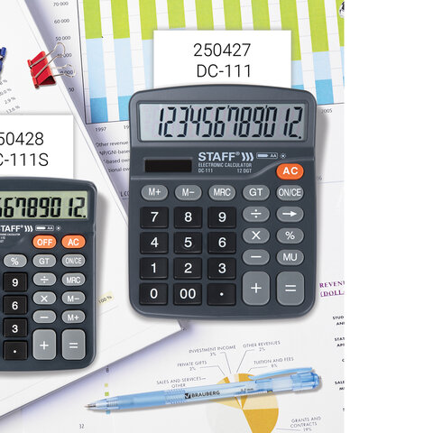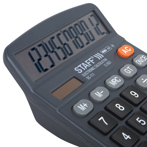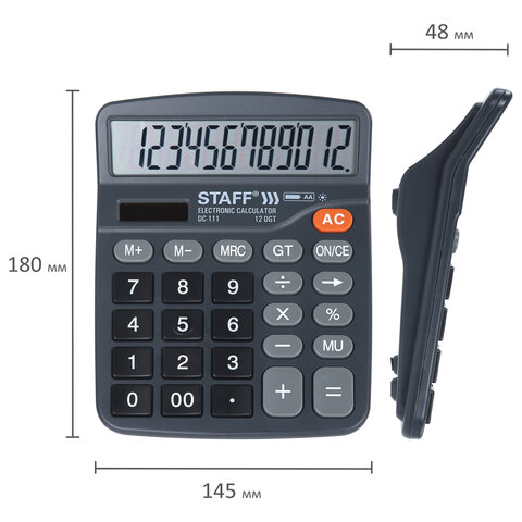 Калькулятор настольный STAFF PLUS DC-111 (180x145 мм), 12 разрядов, двойное питание, +БАТАРЕЙКА АА, 250427