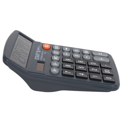 Простой в использовании и точный в расчётах настольный калькулятор STAFF PLUS STF-111 выполняет все необходимые вычисления на работе и дома. Кнопки нажимаются легко и приятно, эргономичный наклон корпуса позволяет работать с максимальным комфортом.