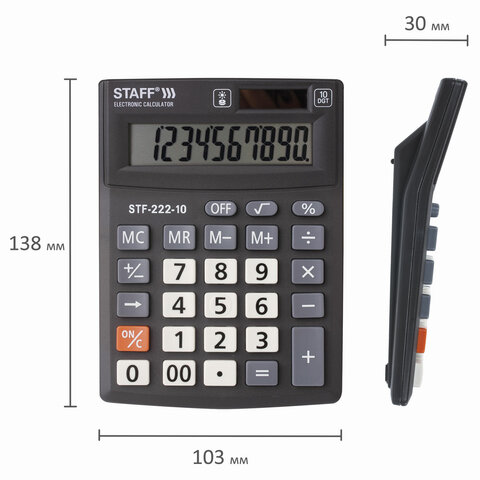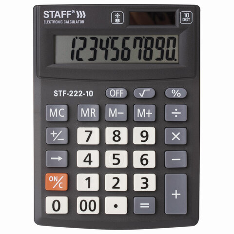 Калькулятор настольный STAFF PLUS STF-222, КОМПАКТНЫЙ (138x103 мм), 10 разрядов, двойное питание, 250419