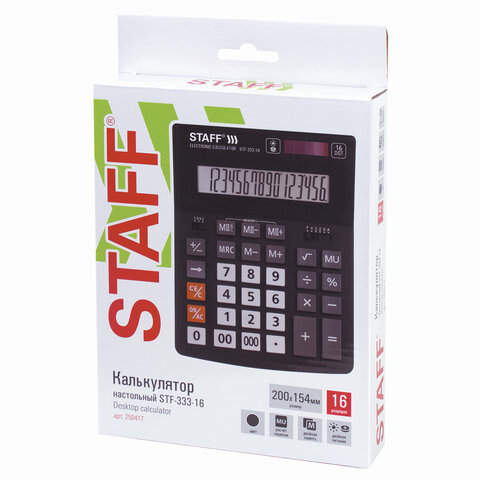 Калькулятор настольный STAFF PLUS STF-333 (200x154 мм), 16 разрядов, двойное питание, 250417
