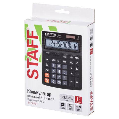 Калькулятор настольный STAFF STF-444-12 (199x153 мм), 12 разрядов, двойное питание, 250303
