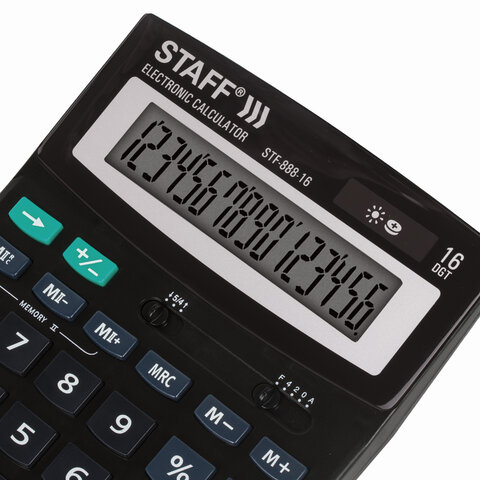 Калькулятор настольный STAFF STF-888-16 (200х150 мм), 16 разрядов, двойное питание, 250183