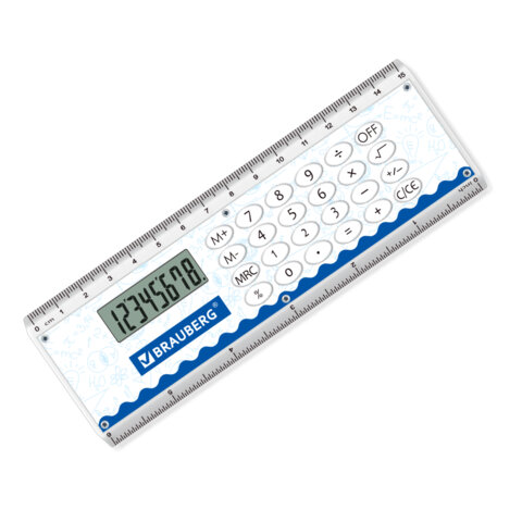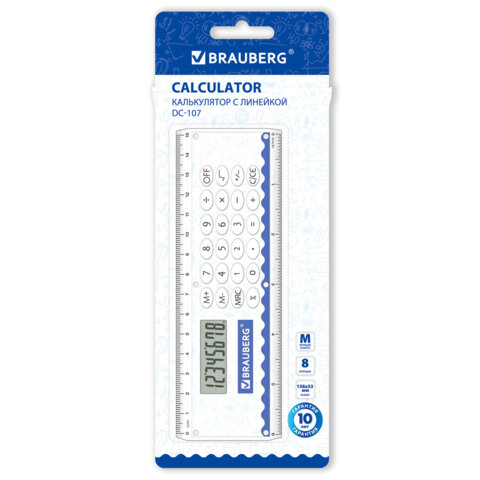 Калькулятор с линейкой 15 см, BRAUBERG DC-107 (53x158 мм), 8 разрядов, 271727