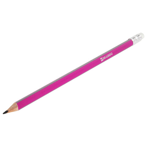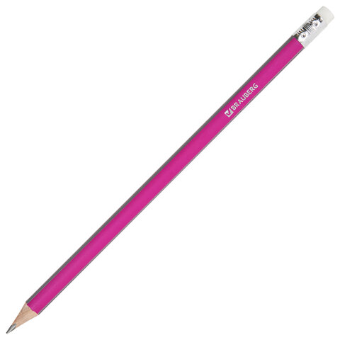 Карандаш чернографитный BRAUBERG, 1 шт., "Alderida", НВ, трехгранный, с ластиком, корпус розовый, заточенный, 180611