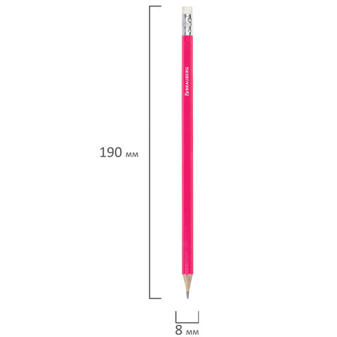 Карандаш чернографитный BRAUBERG, 1 шт., "Fluor", НВ, с ластиком, корпус неоновый ассорти, заточенный, 180613