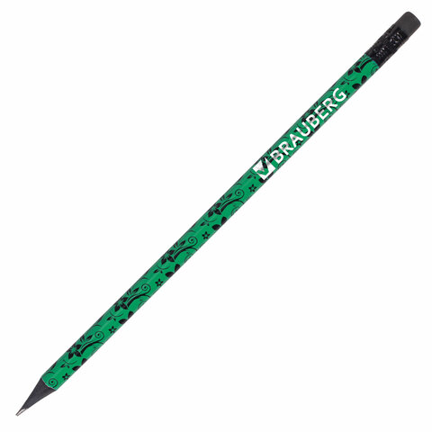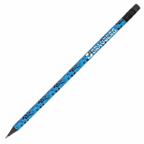Карандаш чернографитный BRAUBERG, 1 шт., "Fuete", НВ, c ластиком, черное дерево, корпус ассорти, 180634
