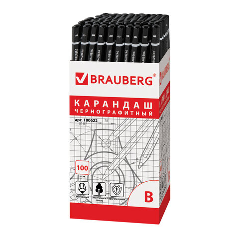 Карандаш чернографитный BRAUBERG, 1 шт., "Touch line", В, корпус черный, заточенный, 180622