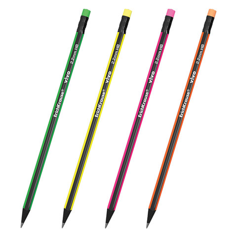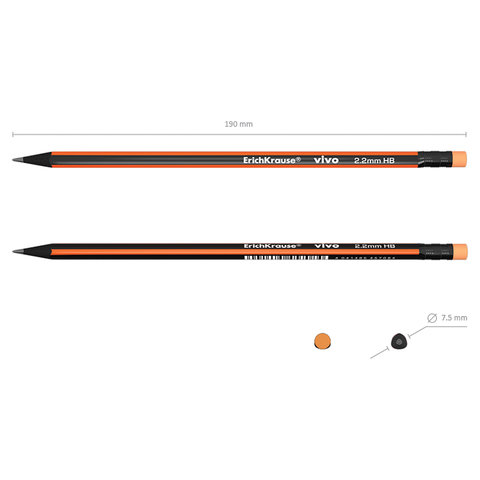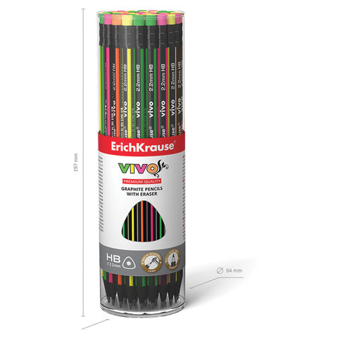 Чернографитный карандаш ERICH KRAUSE "Vivo" поставляется с ластиком.