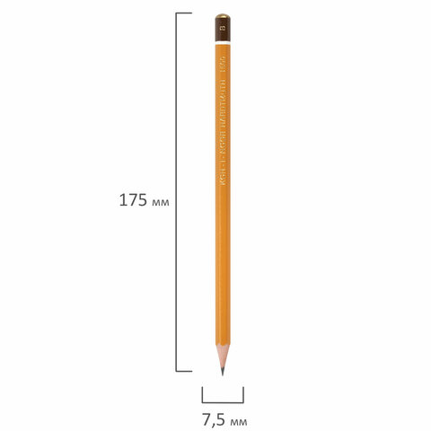 Карандаш чернографитный KOH-I-NOOR 1500, 1 шт., B, корпус желтый, заточенный, 150000B01170RU