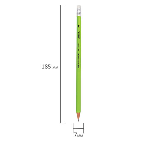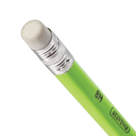 Карандаш чернографитный ПИФАГОР, 1 шт., НВ, пластиковый, корпус салатовый, с ластиком, 181445