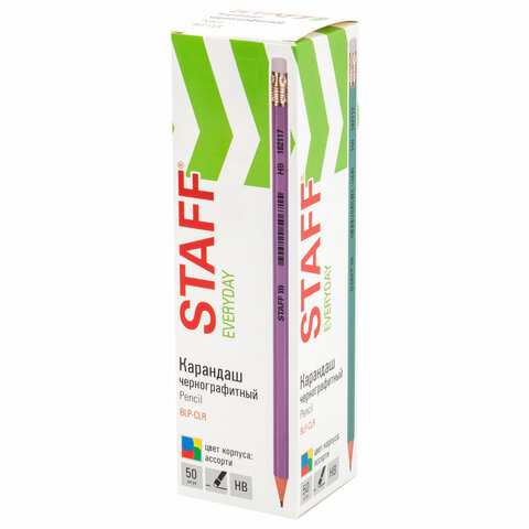 Карандаш чернографитный с ластиком STAFF EVERYDAY BLP-CLR, 1 шт., НВ, цвет корпуса ассорти, 182117