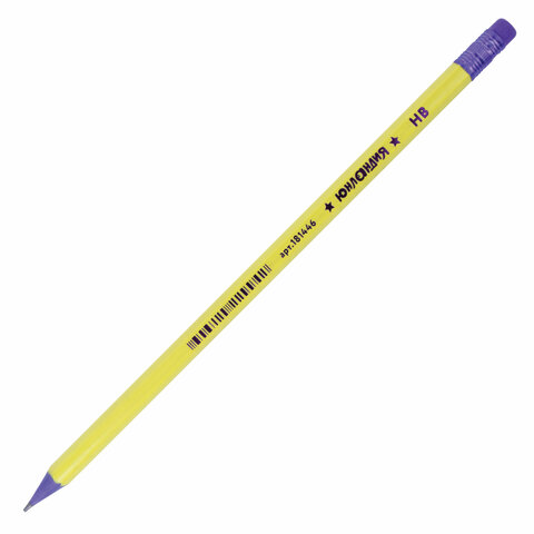 Карандаш чернографитный ЮНЛАНДИЯ, 1 шт., НВ, пластиковый, корпус ассорти, с ластиком, 181446