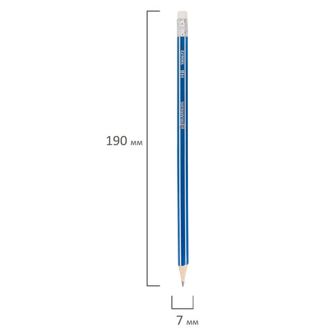Карандаши чернографитные BRAUBERG НАБОР 12 шт., "ZTX", HB, с резинкой, синий корпус, картонная упаковка, 180672