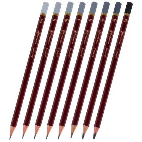 Карандаши чернографитные художественные 2H-8B, НАБОР 8 шт., В ПЕНАЛЕ, BRAUBERG ART "PREMIERE", 181894