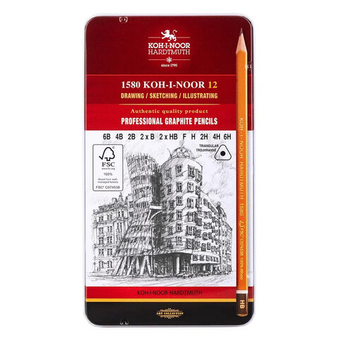 Чернографитный карандаш KOH-I-NOOR серии "1580" отлично подходит для рисования, заметок и разнообразных чертежных работ.