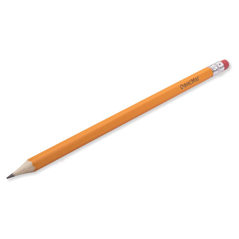 Карандаши чернографитные простые с ластиком HB, ВЫГОДНАЯ УПАКОВКА КОМПЛЕКТ 48 штук, ОФИСМАГ, 180639