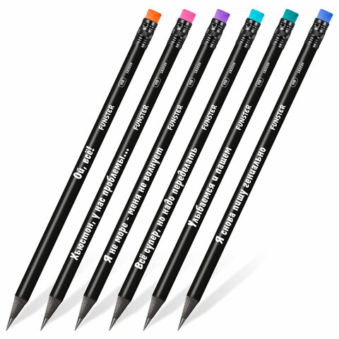 Набор карандашей чернографитных c забавной надписью FUNSTER (ФАНСТЕР) FUNNY NOTES BLK, 6 штук, HB, с ластиком, 182039