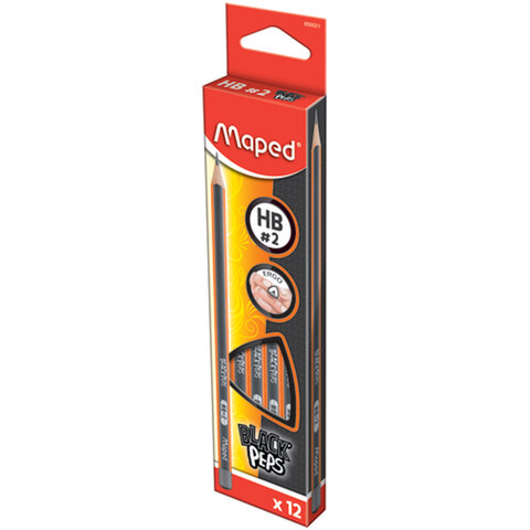Набор карандашей чернографитных MAPED (Франция), 12 шт., "Black Pep's", НВ, трехгранные, без резинки, 850021