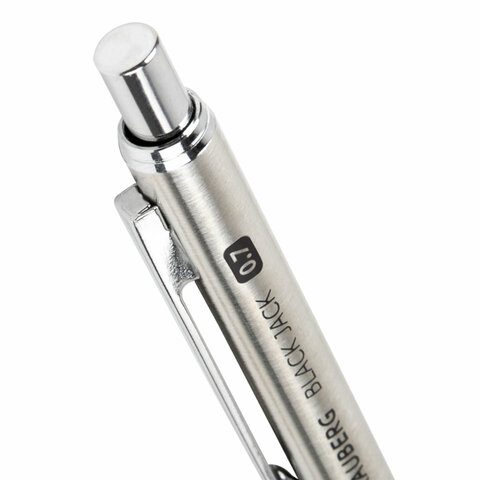 Высококачественный механический карандаш BRAUBERG "Black Jack" с металлическим корпусом черного цвета и удобным резиновым упором, исключающим скольжение пальцев во время письма.